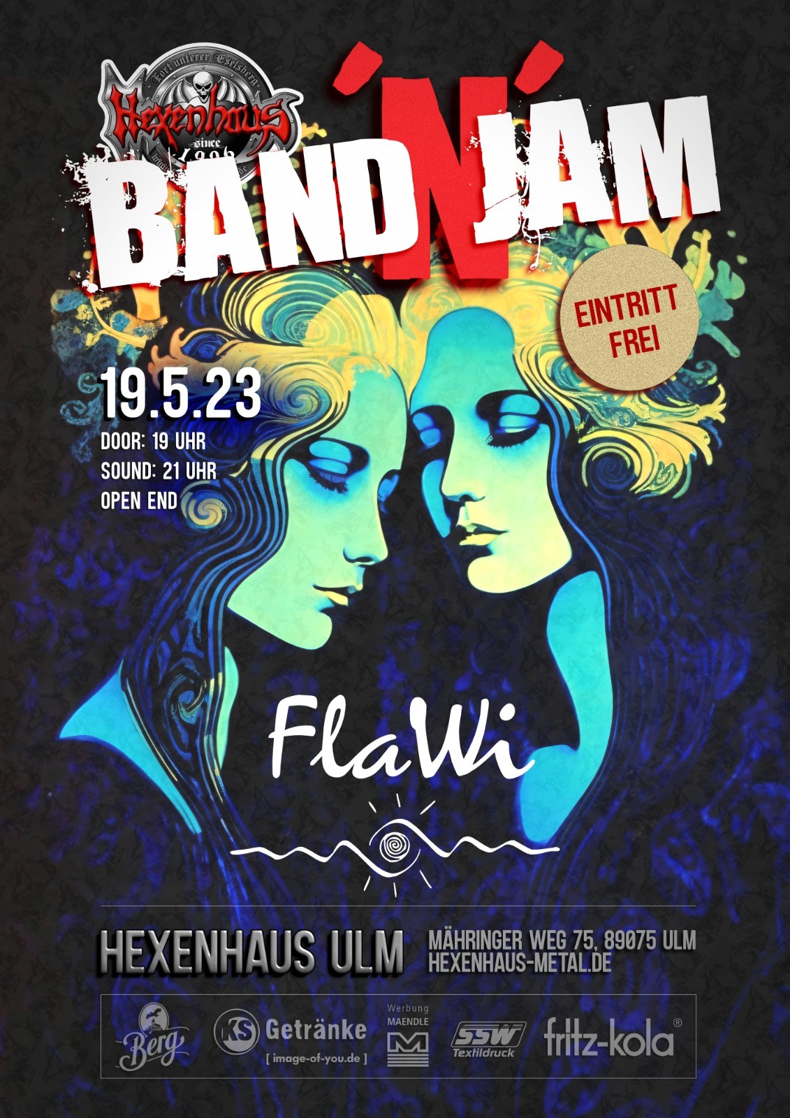 Eintritt frei, Spenden für Band sind willkommen. Opener der Jamsession ist diesmal FlaWi. Open Door 19 Uhr, Sound 21 Uhr.