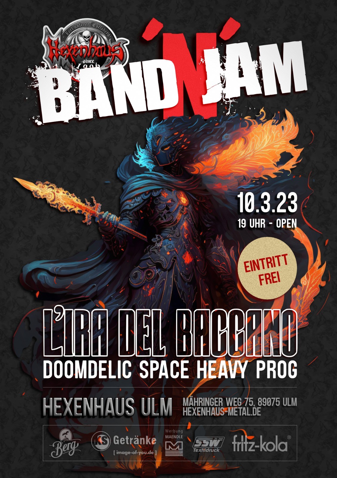 L'IRA DEL BACCANO melt doom influences such as Black Sabbath with the 60’s/70’s psychedelia of Pink Floyd and Hawkwind, the heavy-prog vibes of early Rush, as well as the performing freedom and attitude of jam bands such as The Grateful Dead.The listeners range of the goes from metalheads to stoner-rock / psychedelic/doom fans; '70 progressive rock fans and so L'IRA played in very different types of venues and clubs in the last years.Also opening for different types of bands( Church of Misery, Ozric Tentacles, Ufomammuth...)