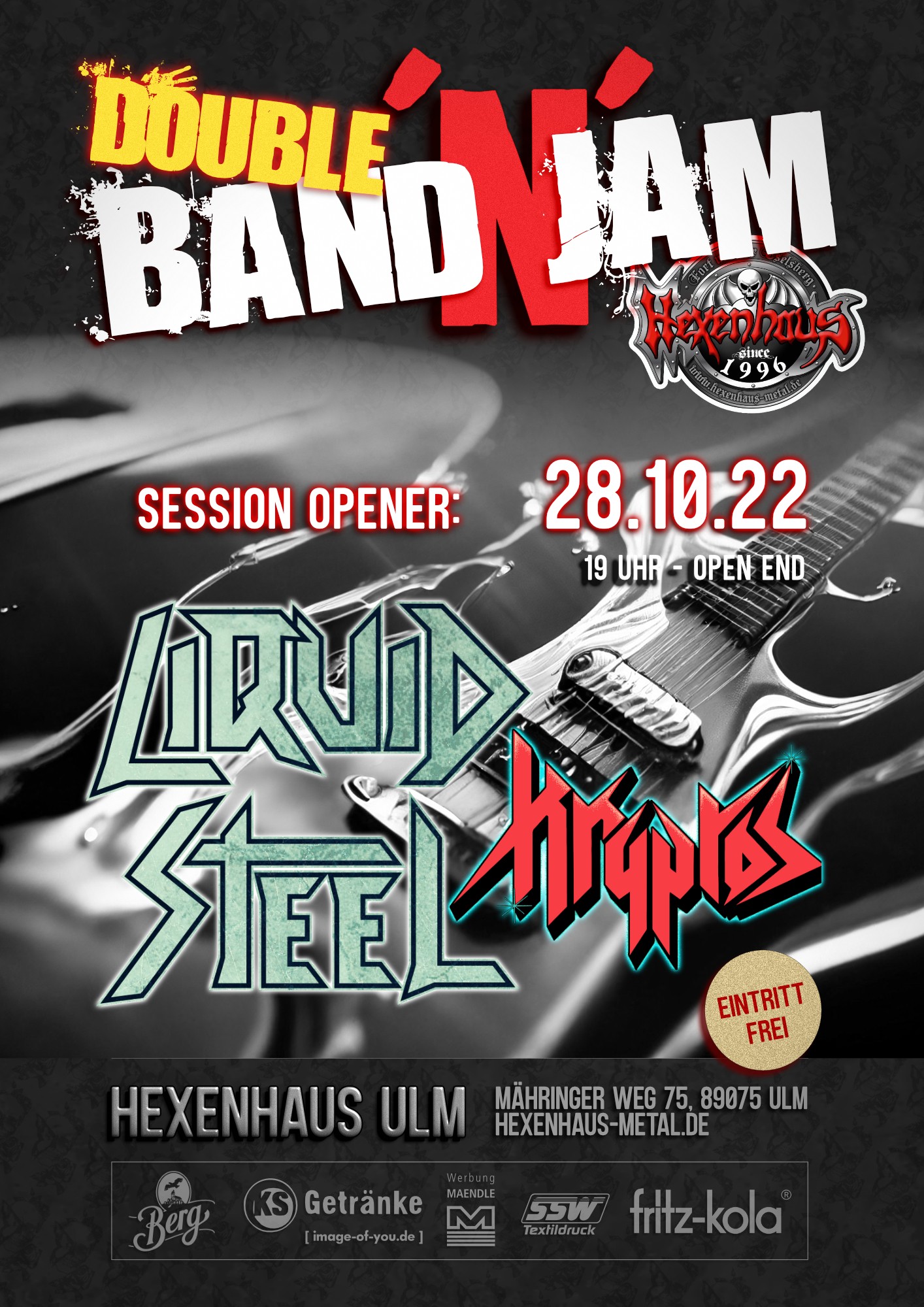Eintritt frei (Spende): Double Band'n'Jam mit Liquid Steel (Österreich) und Kryptos (Indien)