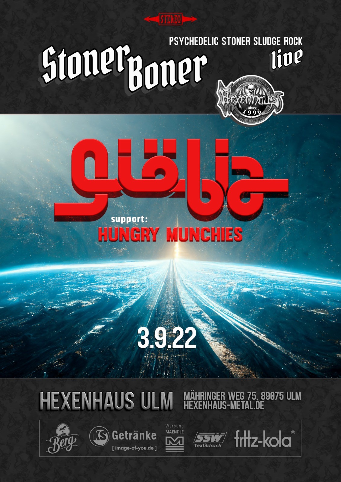Aus den endlosen Weiten des Hippie-Alls kamen die Hungry Munchies nur um nach ihrem Support für Giöbia wieder Planeten und Sonnen hinter sich zu lassen... Möglicherweise sind sie eines Tages erneut auf der Durchreise und betören uns mit ihrem elementaren Sound ein weiteres mal... niemand weiss das so genau.