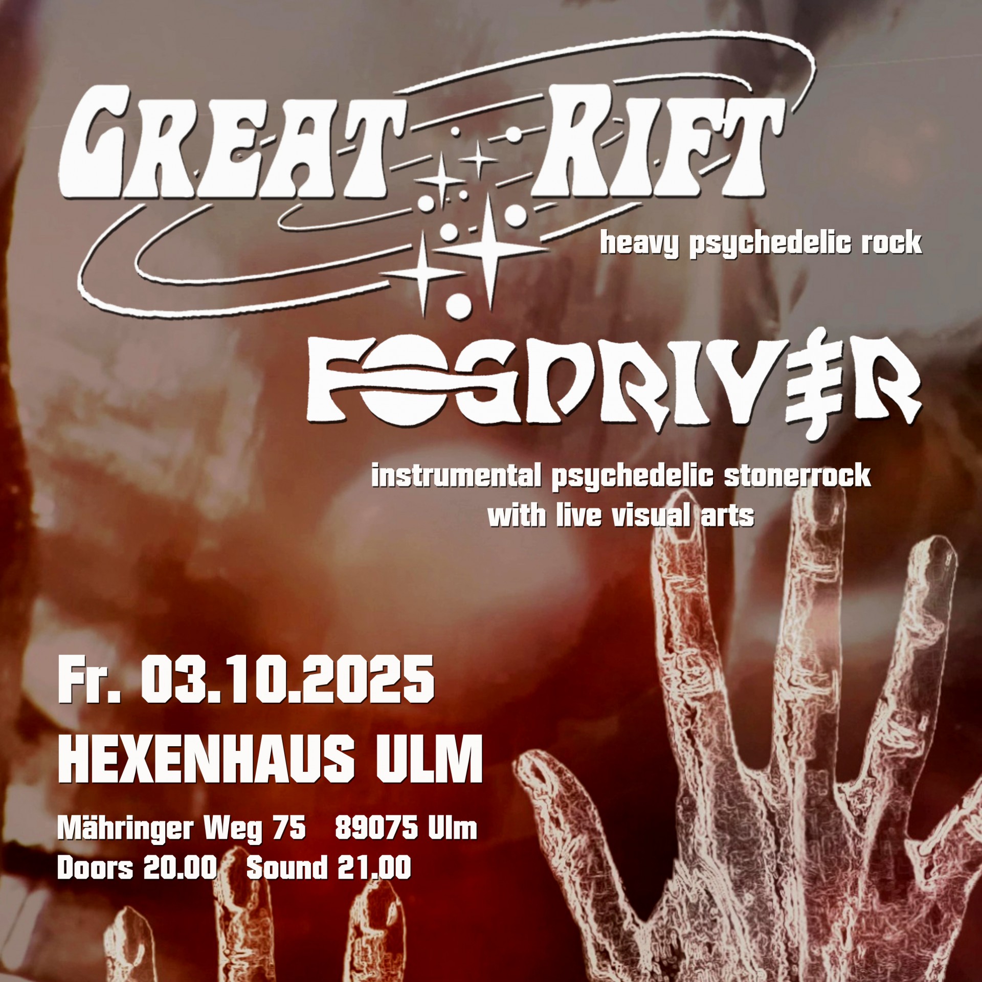 GREAT RIFT steht für fetten psychedelischen Rock, der von den schweren Blues, harten und psychedelischen Klängen der 70er und dem Beginn des Stoner Rocks in den 90ern inspiriert ist. Mit klaren Vocals und mystisch-philosophischen Texten erzählen sie von ihrer größten Inspiration: dem Universum, seinen unvorstellbaren Möglichkeiten und endlosen Weiten. Zusammen mit treibenden Drumbeats, schweren Riffs und futuristischen Gitarrensounds entsteht eine richtig coole musikalische Reise durch Raum und Zeit.