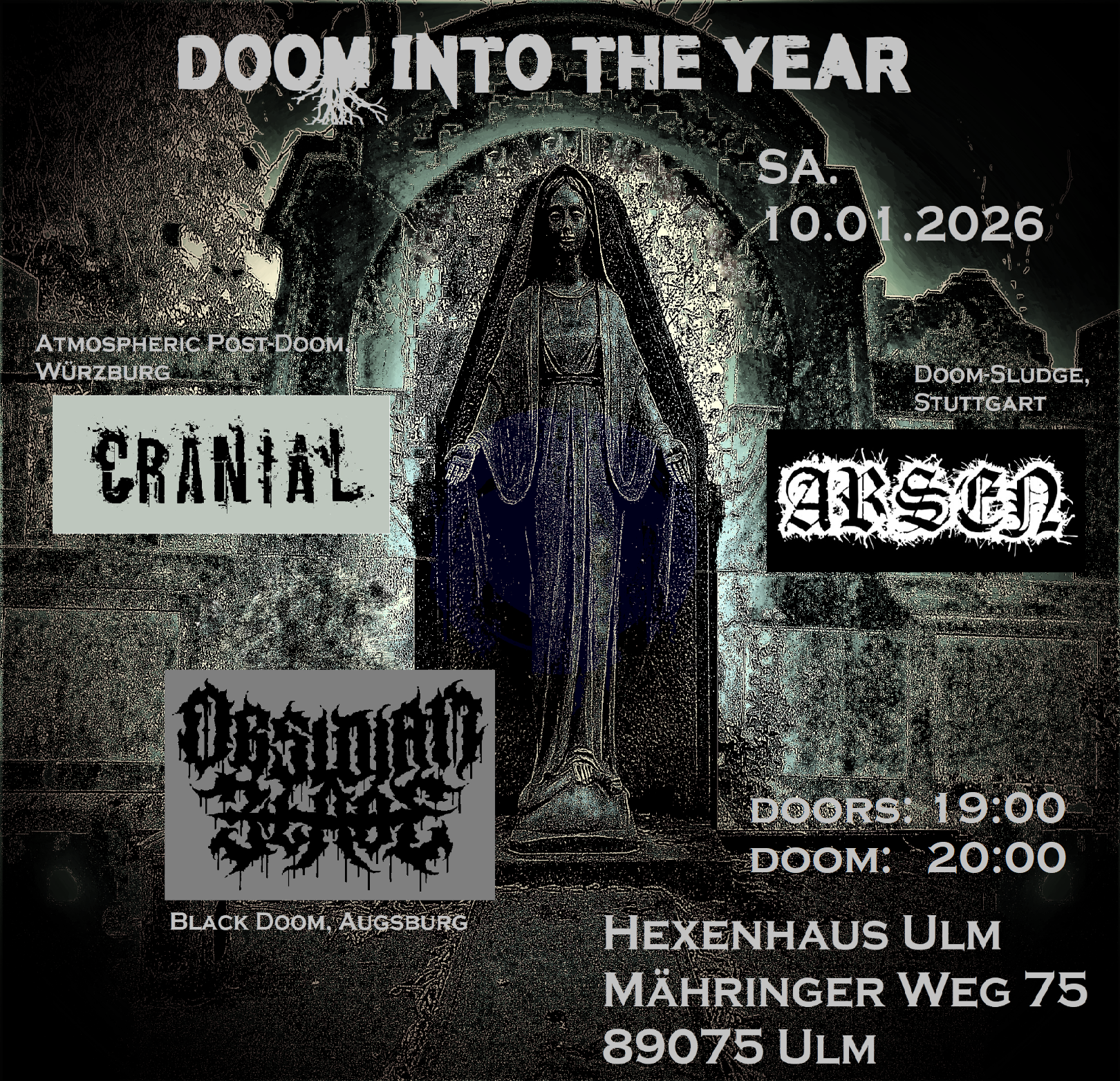 Cranial (ex-Omega Massif) führen seit 2014 Heavy Atmospheric Sludge in einem zusehends düsterer und schwerer werdenden Momentum fort. Nach diversen internationalen Gigs mit Bands wie Mantar, Converge oder Ahab haben die Würzburger im Herbst 2025 ihr drittes Studioalbum 'Structures' veröffentlicht und treiben ihren heavy/slow-Sound in noch härtere und finstere Abgründe.